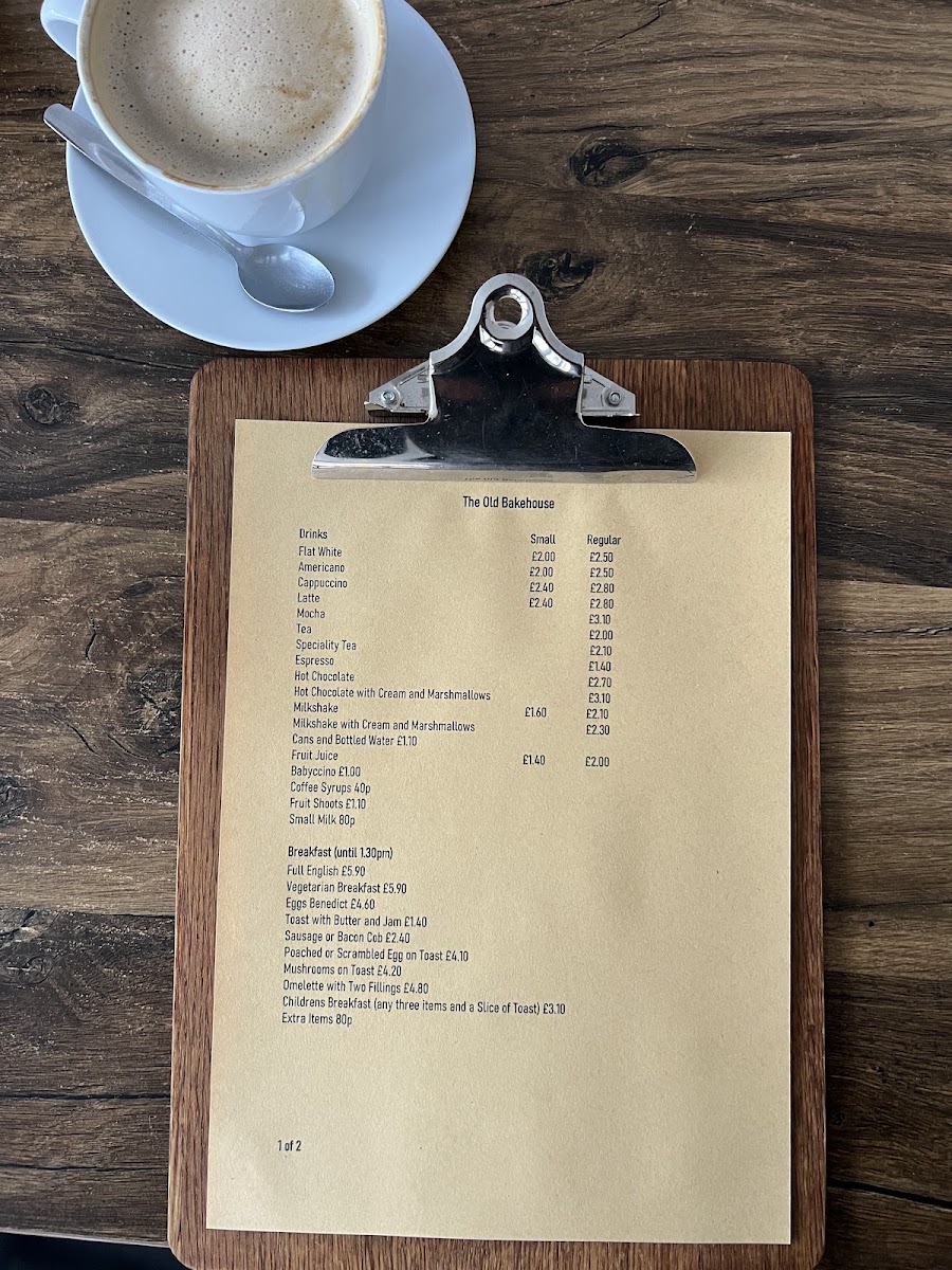 From a reviewer’s perspective, the menu at The Old Bakehouse Tea Room offers a comforting selection of classic café dishes and drinks, with a strong focus on traditional favourites. The sandwich range includes Cheese Salad, Ham, Cheese And Rocket, Tuna Mayonnaise And Sweetcorn, Chicken Mayonnaise With Red Onion, and Bacon, Lettuce And Tomato With Mayonnaise, all of which provide familiar, satisfying choices for a light lunch. The Toasties And Paninis section features warm options such as Ham And Cheese, Cheese And Red Onion, Cheese And Red Onion Chutney, Cajun Chicken And Cheese, and Chicken Pesto And Mozzarella, which are ideal for those wanting something more filling. For lighter options, the salads like Chicken And Balsamic Glaze, Mozzarella And Beetroot, and Prosciutto And Mozzarella With Balsamic Glaze add a fresh touch to the menu. Breakfast is well covered with hearty choices including Full English, Vegetarian Breakfast, Eggs Benedict, Toast With Butter And Jam, and a Sausage Or Bacon Cob, making it a suitable spot for a morning visit. Drinks are varied, with coffee options such as Flat White, Americano, Cappuccino, Latte, and Mocha, alongside treats like Espresso, Hot Chocolate, Hot Chocolate With Cream And Marshmallows, and a Milkshake With Cream And Marshmallows, plus Cans And Bottled Water. Overall, the menu focuses on simple, traditional café food done well, offering plenty of comforting and familiar options for a relaxed tea room experience.